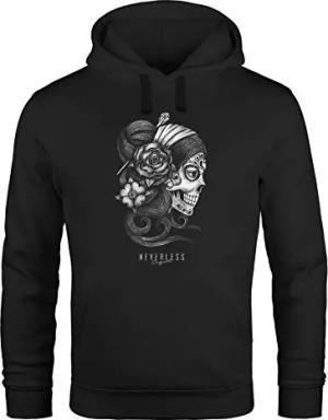 Hoodie Herren Santa Muerte La Catrina Mexican Skull Dia de los Muertos Tattoo Design Kapuzen-Pullover Männer schwarz L