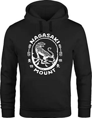 Hoodie Herren Tiger Aufdruck Japan Schriftzeichen Nagasaki Mount Schriftzug Kapuzen-Pullover Männer schwarz L