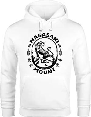 Hoodie Herren Tiger Aufdruck Japan Schriftzeichen Nagasaki Mount Schriftzug Kapuzen-Pullover Männer weiß M