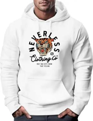 Hoodie Herren Tiger Print Motiv Schrift Retro Vintage Clothing Fashion Streetstyle weiß M