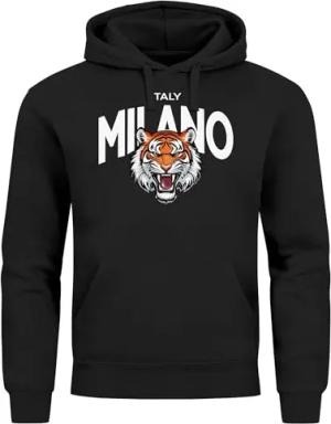 Hoodie Herren Tiger Print Schriftzg Milano Italy Kapuzen-Pullover Männer Italien Fashion Streetstyle schwarz XXL