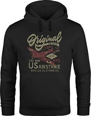 Hoodie Herren US Airforce Army Motiv Spitfire Flugzeug Vintage Motiv Retro Schriftzug Kapuzen-Pullover Männer Fashion Streetstyle schwarz L