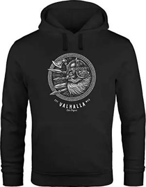 Hoodie Herren Valhalla Odin Emblem Print Kapuzen-Pullover Männer Vikings Wikinger schwarz M