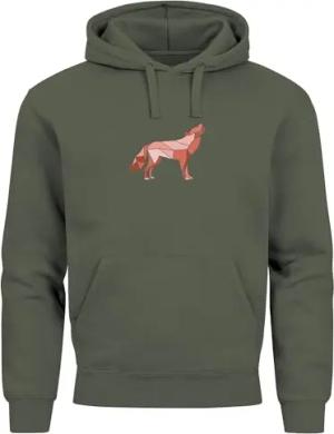 Hoodie Herren Wolf Polygon Tiere Print Aufdruck Geometrie Kapuzen-Pullover Männer Fashion Streetstyle Oliv XL