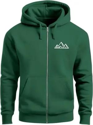 Sweatjacke mit Kapuze Wandern Berge Line-Art Print Aufdruck Motiv Zipjacke Männer Fashion Streetstyle Bottle-Green M