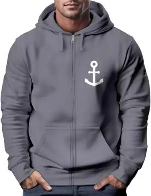Zip-Hoodie Herren Sweatjacke mit Kapuze Anker Logo Print Männer Fashion Streetstyle Convoy Grey L