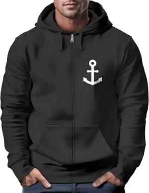 Zip-Hoodie Herren Sweatjacke mit Kapuze Anker Logo Print Männer Fashion Streetstyle schwarz L