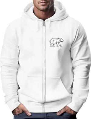 Zip-Hoodie Sweatjacke mit Kapuze Wandern Bär Line-Art Print Aufdruck Zipjacke Männer Fashion Streetstyle Weiss XS