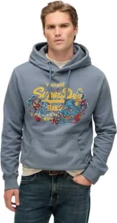 Herren Meliertes Vintage Hoodie mit Logo Marlin Blau S