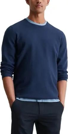 Herren Strickpullover aus Bio-Baumwolle mit Piqué-Struktur, Blau (Dark Navy), M