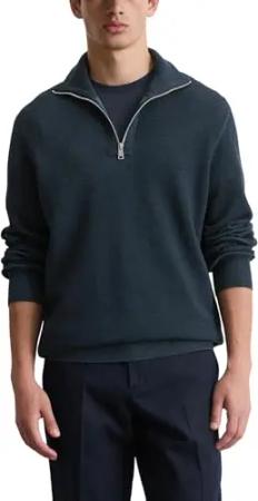 Marc OߴPolo Herren Troyer mit geripptem Kragen Regular Fit, Blau (Dark Navy), XL
