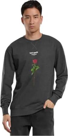 Herren Sweatshirt Lost Youth Rose Crewneck Charcoal L