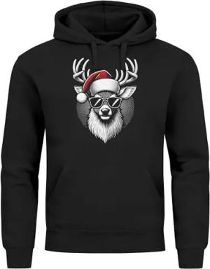 Hoodie Herren Weihnachten Kapuzen-Pullover Rentier Hirsch Weihnachtspullover Männer schwarz XS