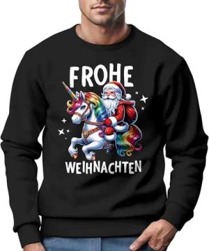 Sweatshirt Herren Frohe Weihnachten Weihnachtspullover Santa Claus Aufdruck Weihnachtsoutfit Männer schwarz XS
