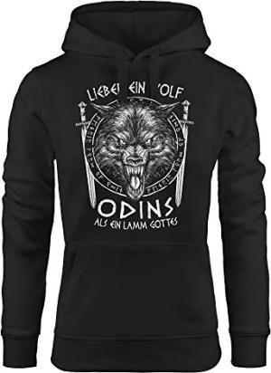 Hoodie Damen Lieber EIN Wolf Odins als EIN Lamm Gottes nordische Mythologie Wikinger Kapuzen-Pullover Fashion Streetstyle Schwarz S