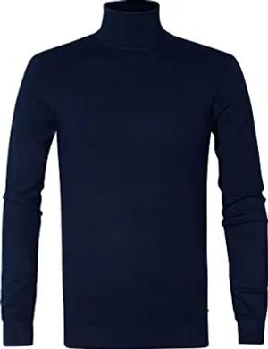 Herren Rollkragenpullover - Langarm Turtleneck Sweatshirt - Pullover - Rippstrickabschlüsse - Herrenbekleidung - Blau - M