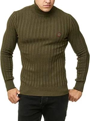 Herren Rollkragen Pullover Sweatshirt Strickpullover Khaki M