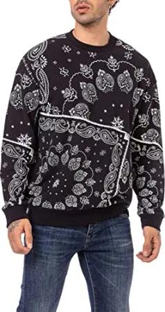 Sweatshirt Rundhals Pullover Paisley Muster Schwarz XL