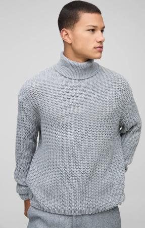 Pullover Herren, Rollkragenpullover aus 100% Baumwolle, Strickpullover, Pulli Herren mit luxuriöser Reiskorn-Optik, zeitlos & hochwertig, Grau, Gr. M