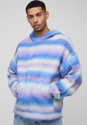 Kastiger Oversize Pullover mit Streifen - Lila - XL, Lila
