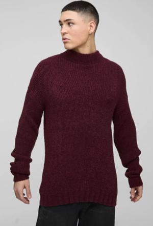 Lockerer Bouclee-Strickpullover Mit Trichterkragen - Burgundy - L, Burgundy