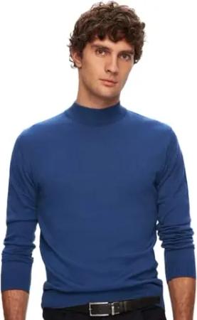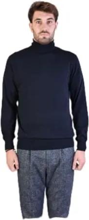 Herren Pullover Roll-Kragen-Pullover Rippstrick Streetwear Designer S M L XL XXL 3XL Einfarbiger Stretchy Strickpullover 436, Farbe:Blau, Größe S-3XL:XXL