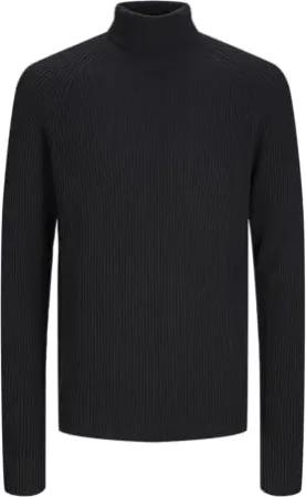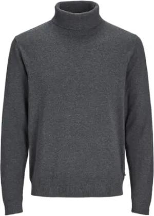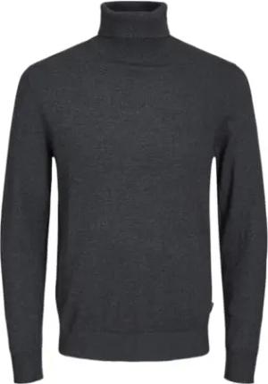 Herren Jack & Jones Dünner Rollkragen Strickpullover | Klassischer Rundhals Sweater | Langarm Basic JJEEMIL, Farben:Dunkelgrau, Größe Pullover:M