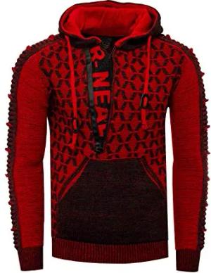 Herren Pullover Kapuzenpullover Stretch Strick Sweatshirt Optik Kapuze Zipper 343, Größe S-6XL:M, Farbe:Bordo