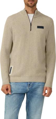Baumwoll-Pullover mit Struktur und Troyer-Kragen