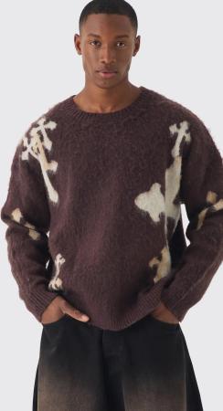 Kastiger Oversize Strickpullover - Chocolate - L, Chocolate