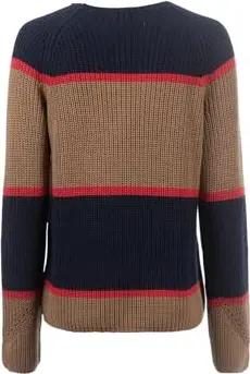Herren Rundhals Pullover mit Kontraststreifen Blau-Rot, menswear-4XL