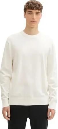 Herren Basic Strick-Pullover mit Rundhalsausschnitt,12906 - Wool White, S