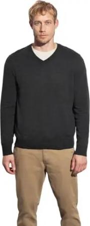 Basic V-Neck Strickpullover Anthra Grey Melange 3XL
