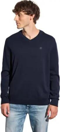 Basic V-Neck Strickpullover Nightside Blue 3XL