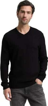 Herren Basic Strickpullover aus Baumwolle, 10617 - Black Grey Melange, S