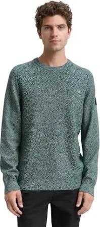 Herren 1039805 Strickpullover mit Crewneck, 37094 - Turquoise Blue Melange, XL
