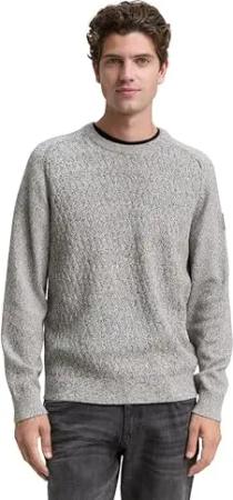 Herren 1048745 Strickpullover mit Rundhalsausschnitt, 39369-Offwhite Grey Plated Mouline, M
