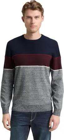 Herren Crewneck Strickpullover, 37027 - Navy Peanut NEP Colorblock, S