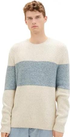 Herren Colorblock Strickpullover, beige navy multi structure, XL