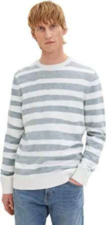 Herren 1048259 Strickpullover im Streifenmuster, 16904-Grey White Stripe, S