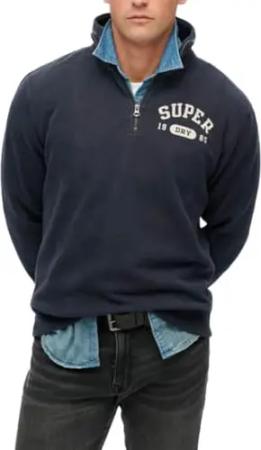 Herren Vintage Athletic Zip Pullover mit Halbreißverschluss Finster Marineblau XL