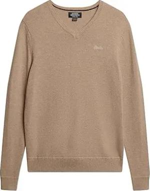 Herren Essential Strickpullover mit Stickerei und V-Ausschnitt Hafer Grau Meliert M