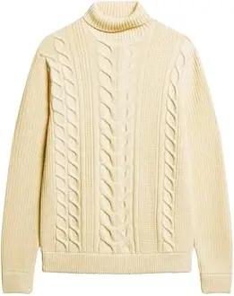 Herren The Merchant Store – Rollkragenpullover mit Zopfmuster Wollweiß L