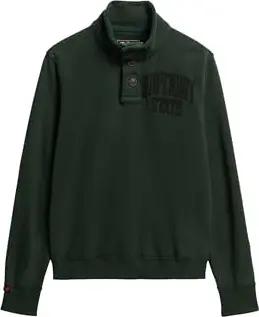 Herren Vintage Athletic Pullover mit halber Knopfleiste Akademie Dunkelgrün XXL