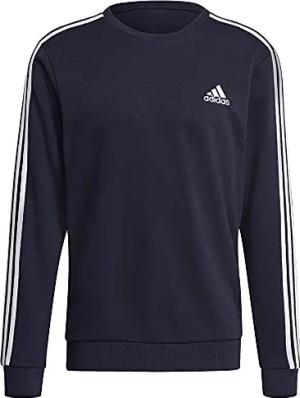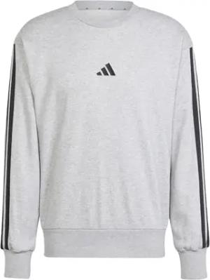 Men's Essential Three Stripes French Terry Sweatshirt, Medium Grey Heather/Black, S