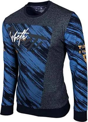 Herren Sweatshirt Pullover Tube-Neck Pulli mit Stehkragen und Knopfverschluss 4005, Farbe:Blau, Größe:S