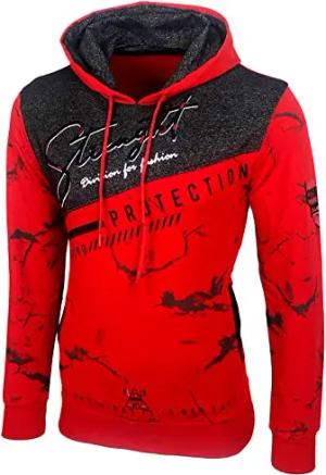 Herren Pullover Hoodie Sweatjacke Longsleeve Sweatshirt Jacke Langarm Kapuzenpullover Hoody Sweater 2628, Farbe:Rot, Größe:XL