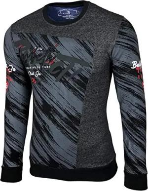 Herren Pullover Hoodie Sweatjacke Longsleeve Sweatshirt Jacke Langarm Kapuzenpullover Hoody Sweater 2628, Farbe:Grau/Schwarz, Größe:M