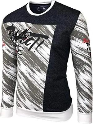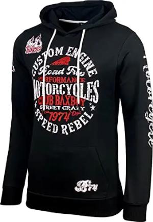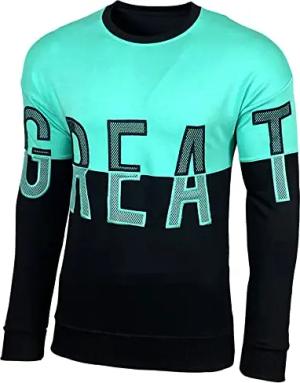 Herren Sweatshirt Biker Langarmshirt Rundhals Ausschnitt Männer Longsleeve Pulli weißes Sweater Shirt Mit Print Langarm 3043, Farbe:Schwarz/Grün, Größe:M