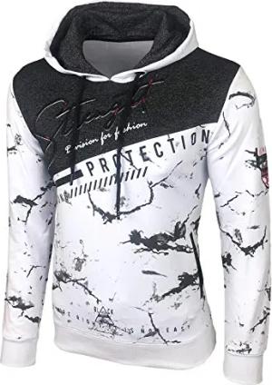 Herren Pullover Hoodie Sweatjacke Longsleeve Sweatshirt Jacke Langarm Kapuzenpullover Hoody Sweater 2628, Farbe:Weiß, Größe:3XL